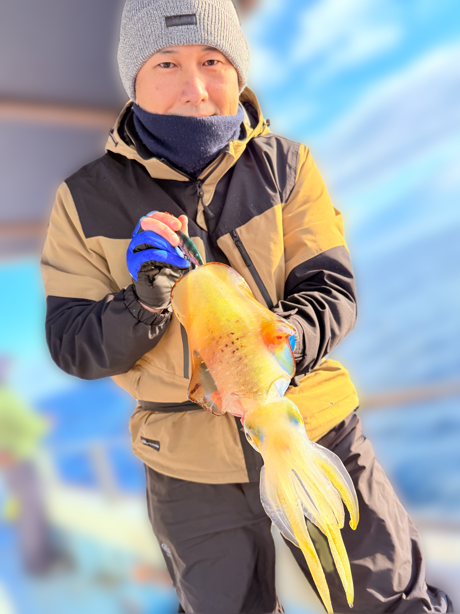 期待の潮でベタ凪予報の割には思ったようなラッシュは無くポツポツと🦑前半に常連の矢野様に1.27kg👏年内にキロ超えの目標クリアですね…