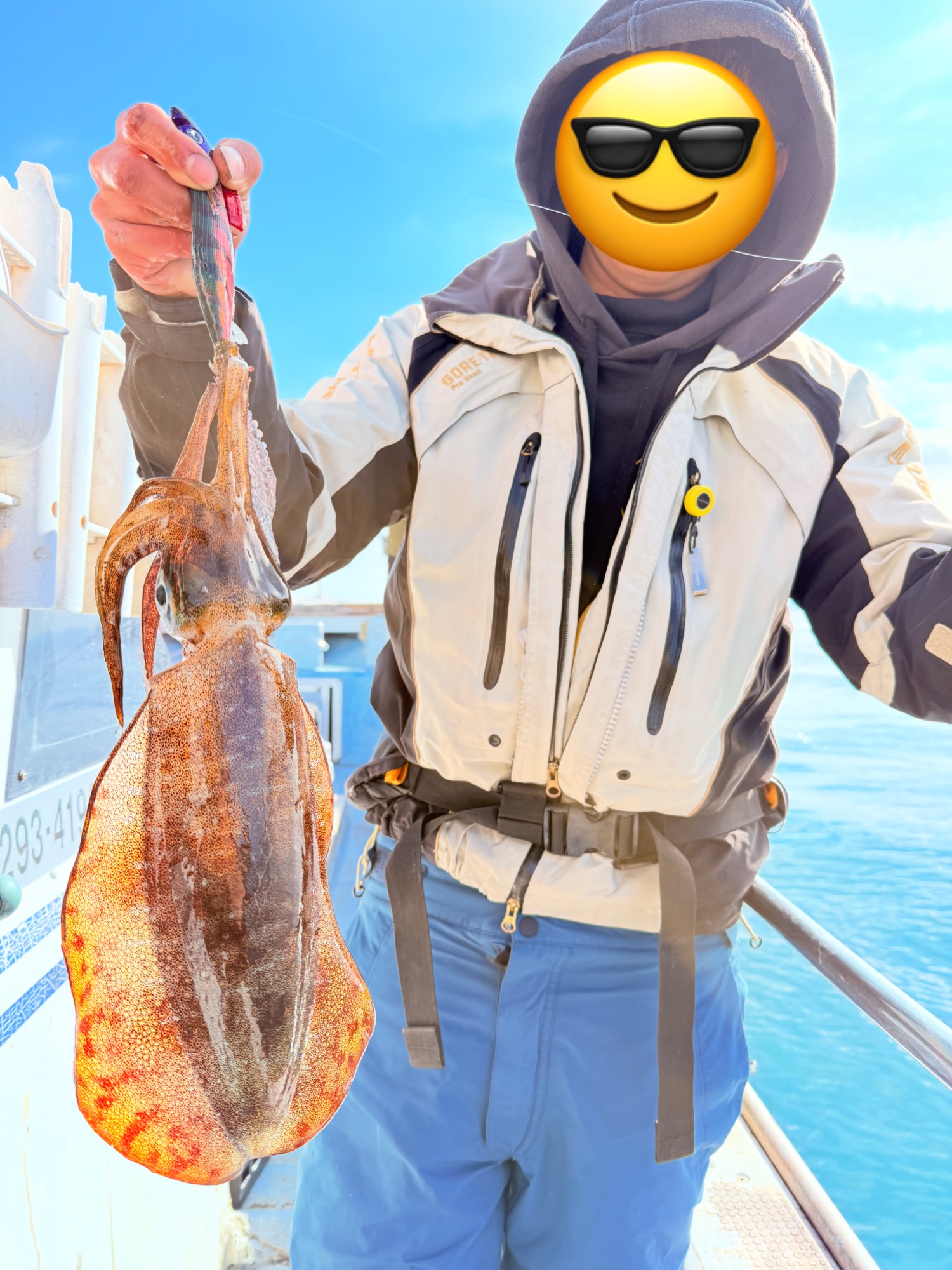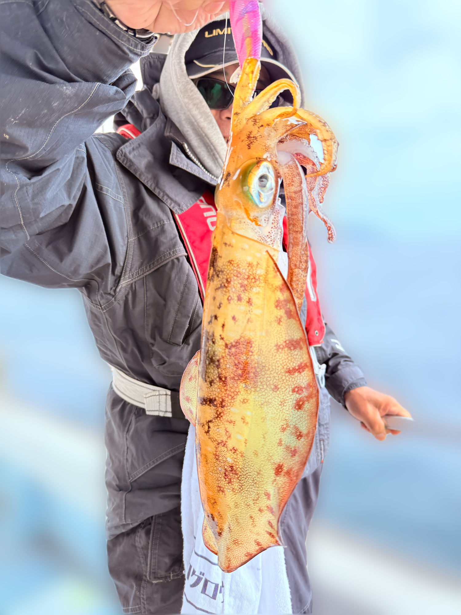 今日も朝からキロ超え降臨で出だし好調😍少人数での出船だったので船長も楽しませて頂く事に🎣早速お客様とダブルヒット🦑🦑仲良く1つのタモ…