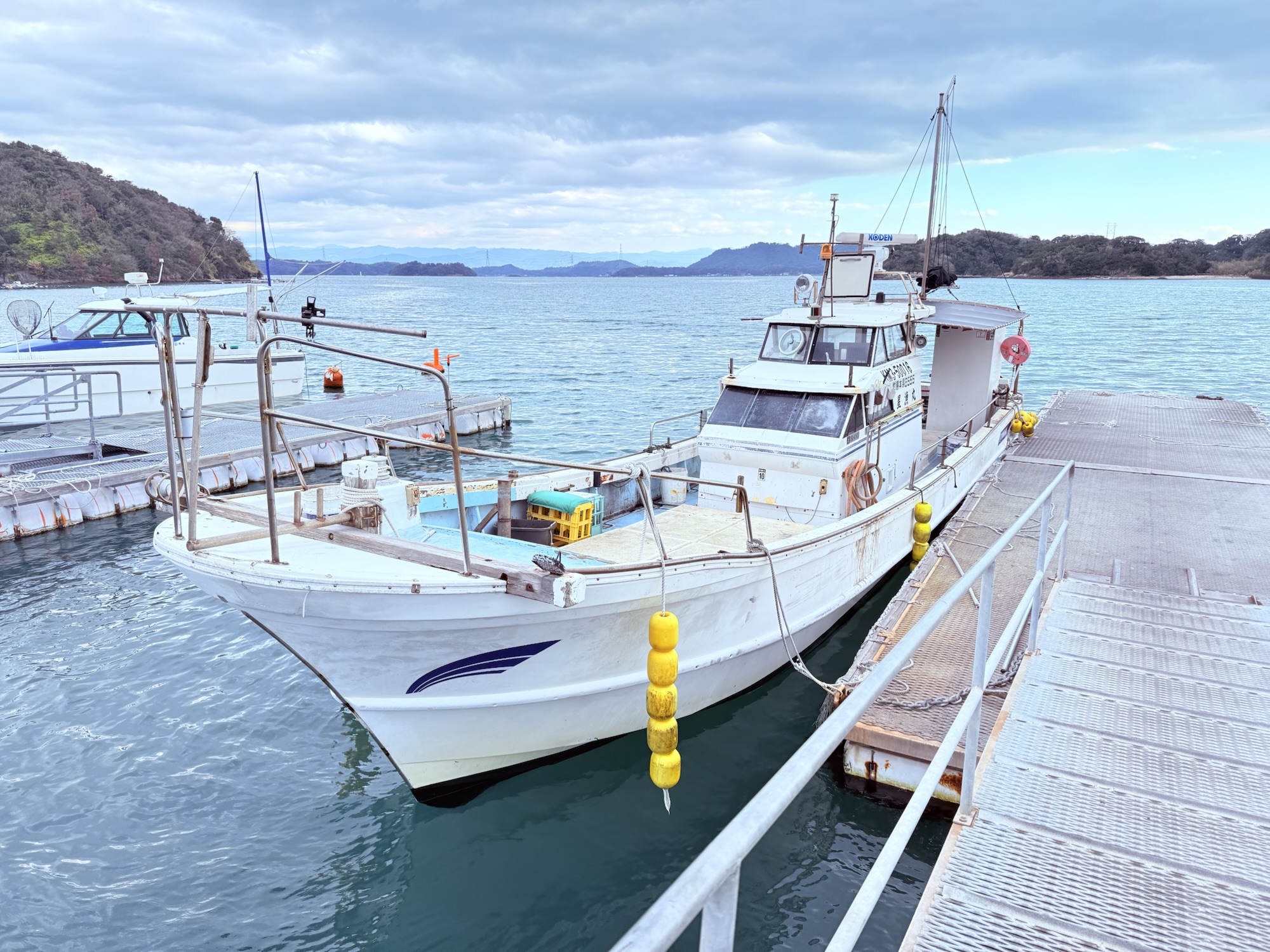 係留場所と集合場所が違うの為、指定の時刻に三角東港の定期船乗り場の桟橋にてお待ち頂く形となります。「星漁丸」が着岸後、お足元にご注意頂きご乗船ください。他のお客様の荷物もお互い協力しあって船に積み込んで頂けると助かります。ロッドはロッドホルダーへ差し込んでください。
