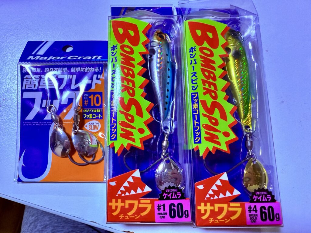 ・ライトジギング メインラインPE1.5-3号 リーダーフロロ8-12号 ジグ 60-120g ロングジグ(シルバー系)、セミロング系、ブレードジグ等様々ですが太刀魚用のジグのフックを青物用に強化した物でも可能です❗️