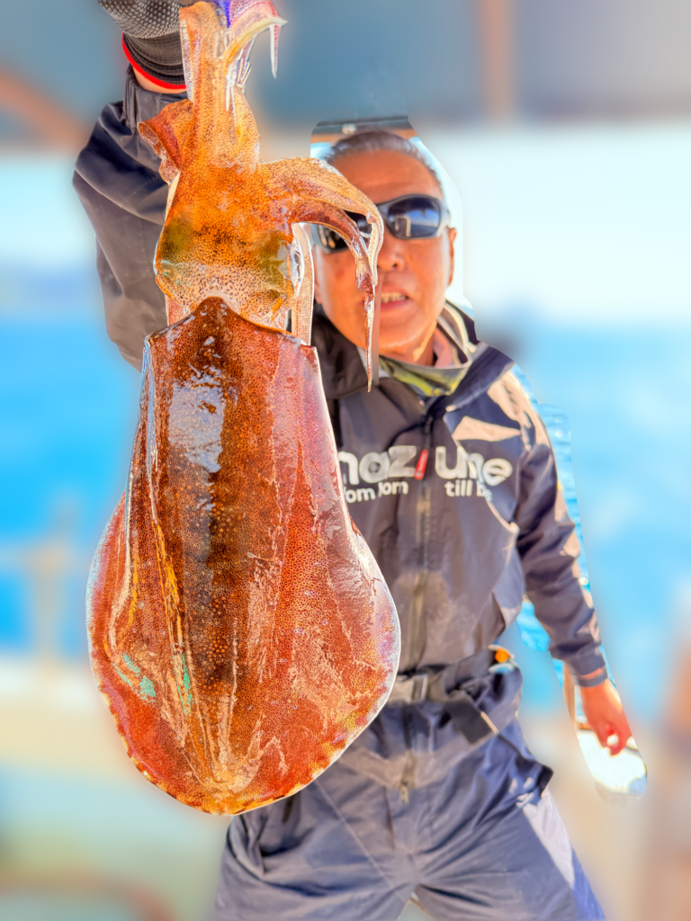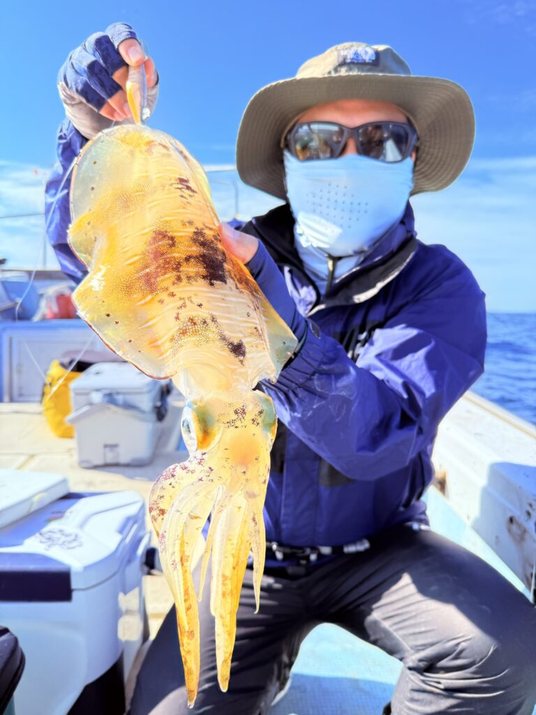 今日もキロオーバー含め釣れたらサイズは良型ばかりでしたが数が上がらず、少人数だったので潮の様子見たりシンカーの重さの様子見てみる為に竿を出しましたが3杯で終了😞仲良く皆さん3杯ずつの釣果で船中12杯と言う渋い釣果になりました😩💦