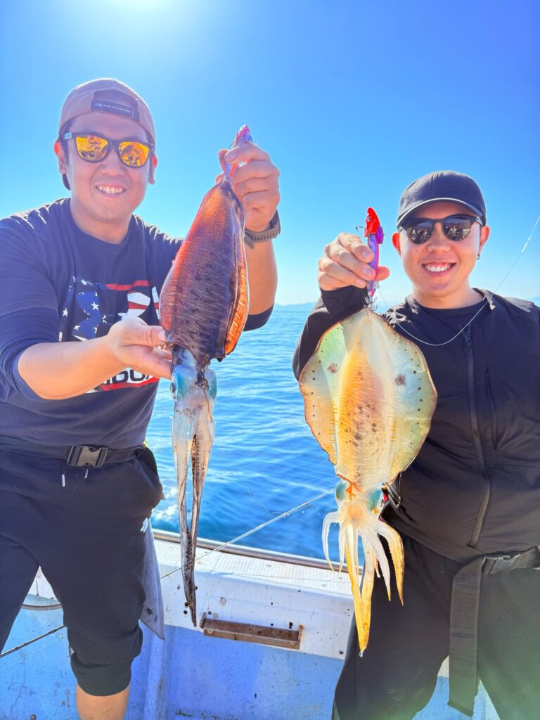レンタルタックルで初心者の皆様も順調に数を伸ばして頂き皆様大満足💯釣りガールのお客様は良型含む最終的に4杯🦑