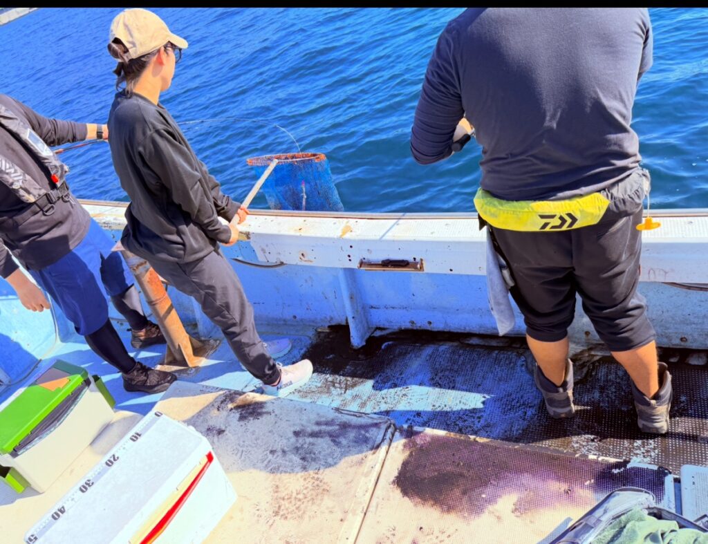 キロオーバーは当たり前❗️連鎖ダブルヒットもあり船上はバタバタ💦最後はタモ追い付かずお客様にタモ入れを任せる状況に😂