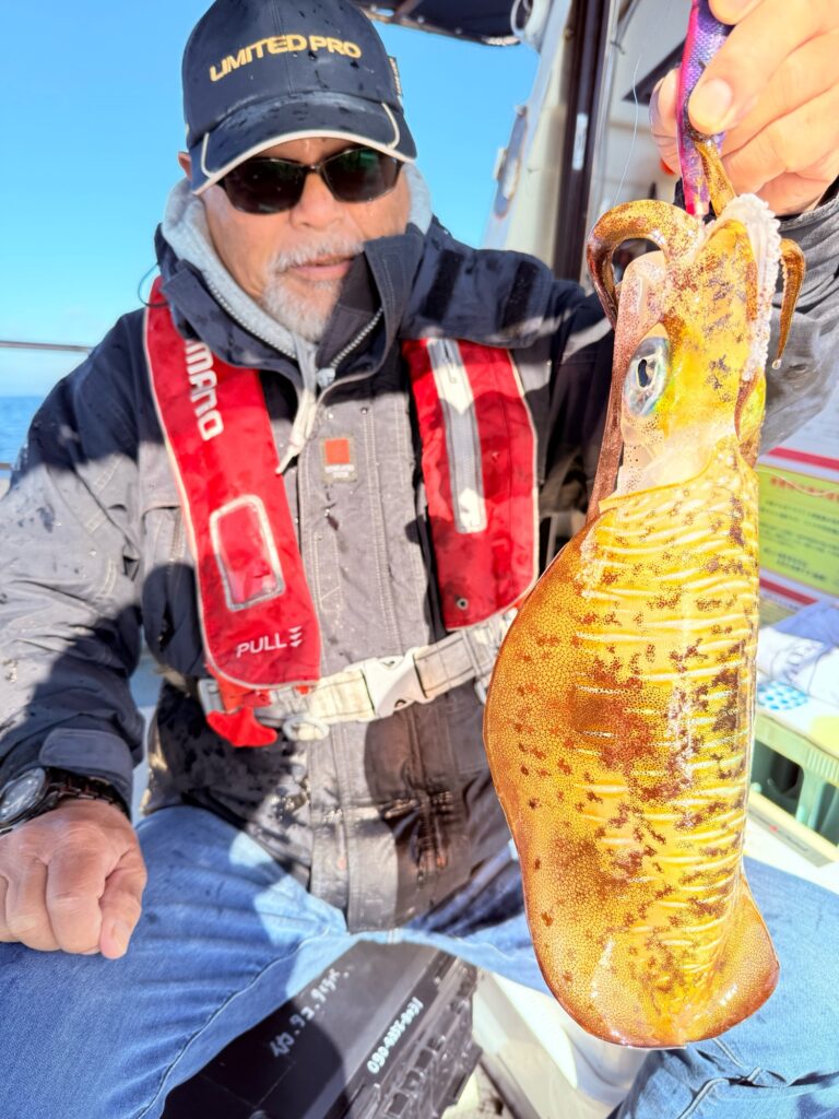 潮の緩い浅場を流したらサイズダウン⬇️帰りに少し寄り道して2杯追加して納竿🎣 竿頭6杯、船中24杯でした❗️ちょっと少ない釣果でした申し訳ありません🙂↕️💦