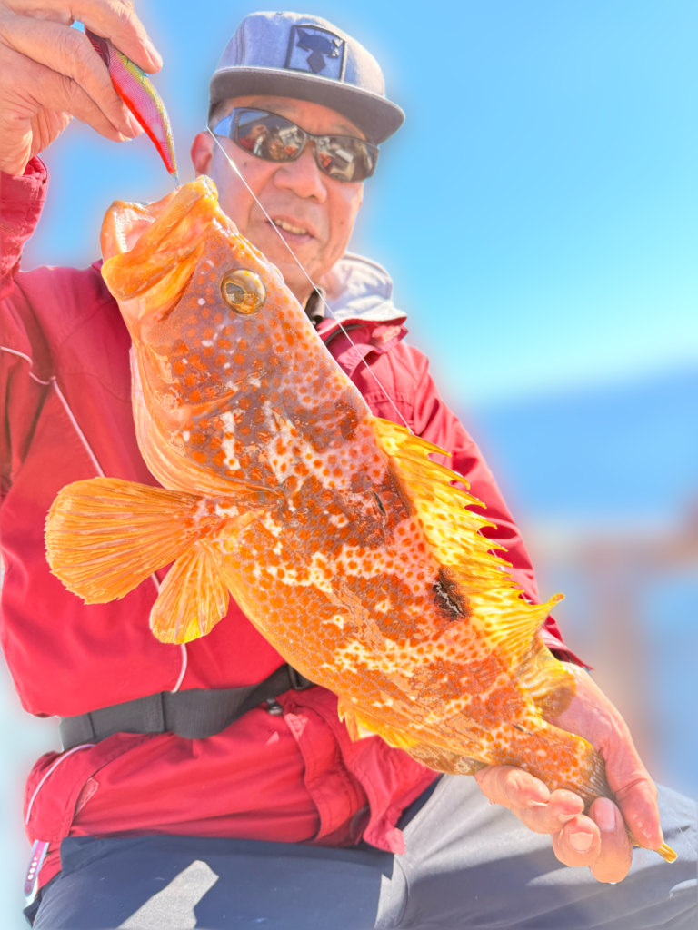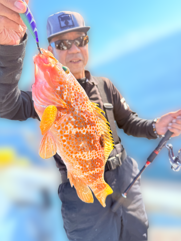 途中美味しい外道の良型アコウが2匹、良型モンゴウイカ2杯(船長貰いました🙏)も登場🐟