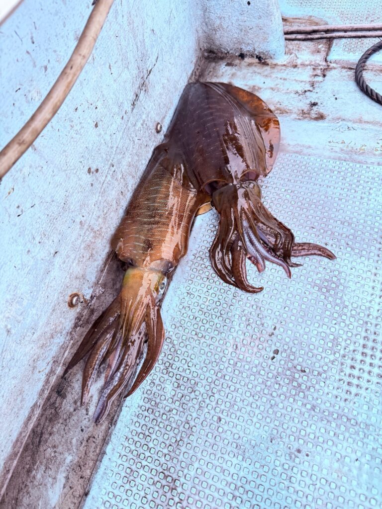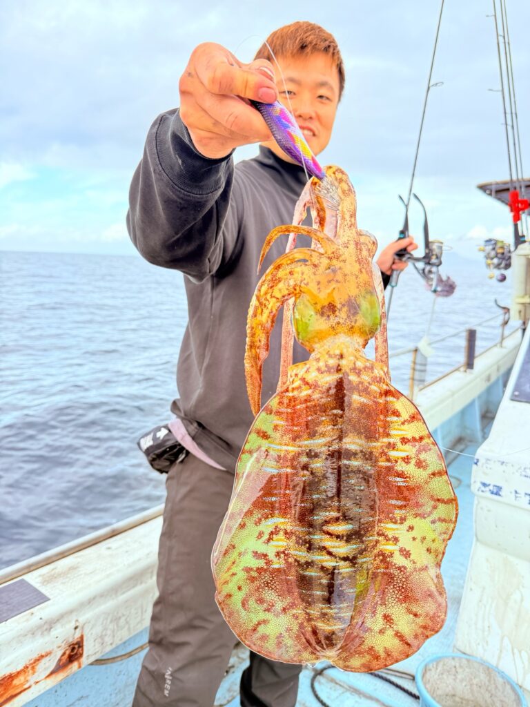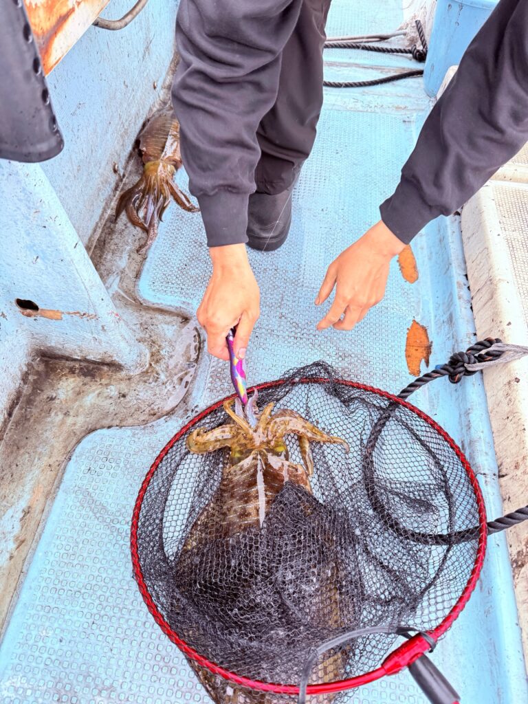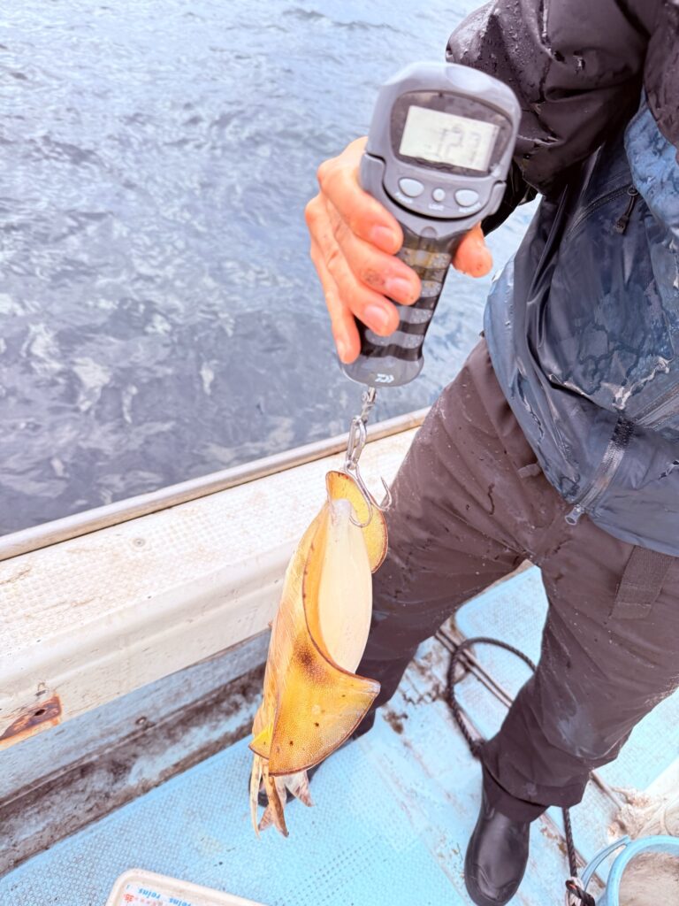 昨日の最後に着いて来た1.5kgサイズは船長が捕獲(笑)今シーズン今の所最大の1.57kgでした🦑でもまだまだデカいのは居るのでチャレンジお待ちしております🎣