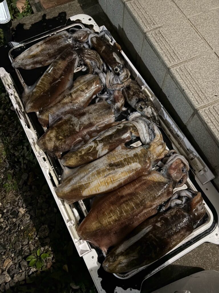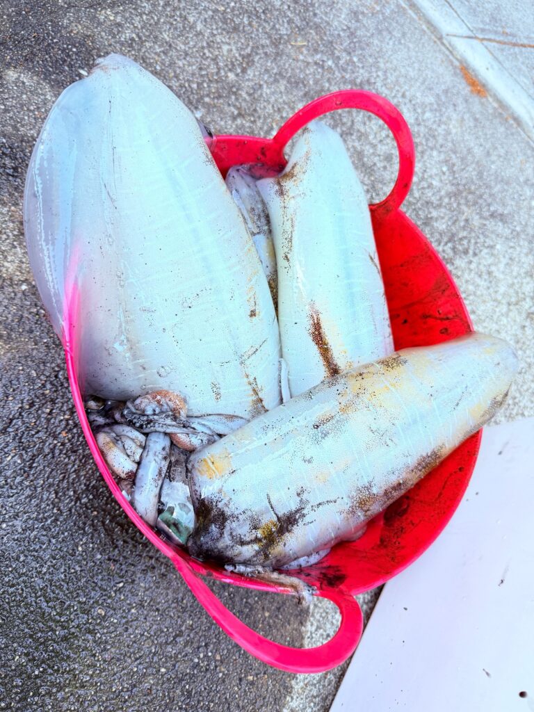 船長の10杯中3杯はキロ超え(1.57kg 1.42kg 1.2kg)それ以下も500g〜950gでした🎵お陰様で我が家のイカ冷凍ストックがだいぶ増えました😆いや〜しかし楽しかった大満足(笑)
