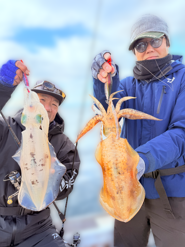 竿頭は何とレンタルタックルのお客様で9杯⬆️2番手7杯、3番手6杯でサイズも申し分ありません🙆♂️キロオーバー多数でした🦑今日は皆様全員安打で船中28杯の激アツDayでした🔥