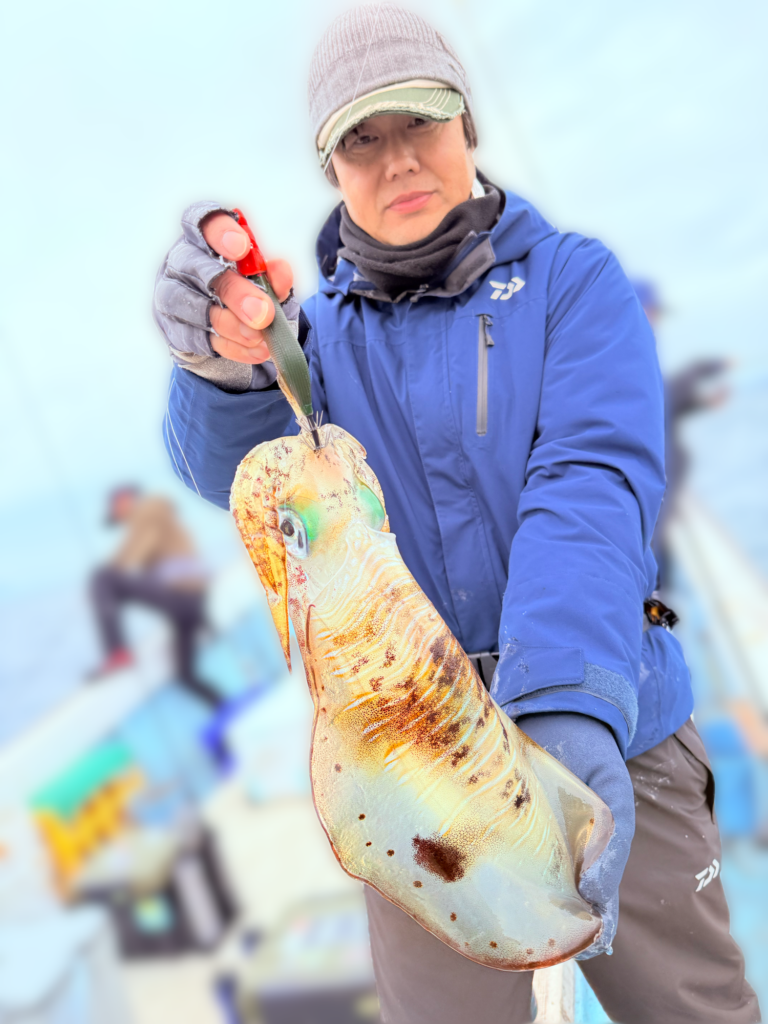 今日はドテラ流しではなく1日通して両舷に分かれてバーチカルで釣りました🎣昨日がドテラ流しでイマイチだったので作戦変更です🦑