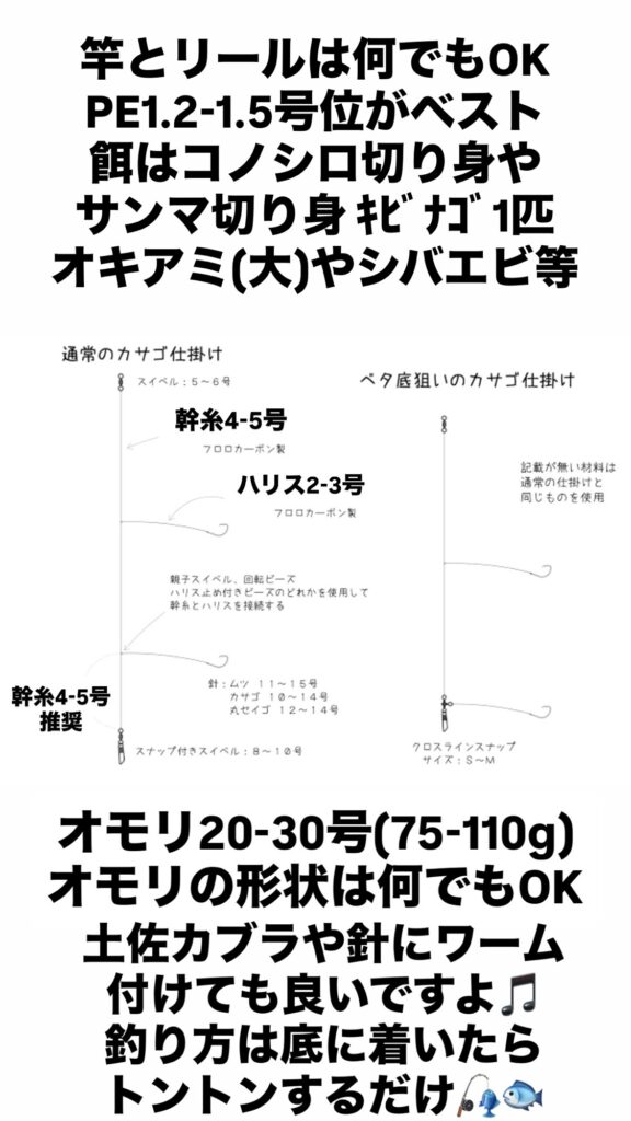 次に仕掛けですが、基本的に胴付き仕掛けがオススメです🎣幹糸4-5号、ハリス2.5-3号がオススメです❗️