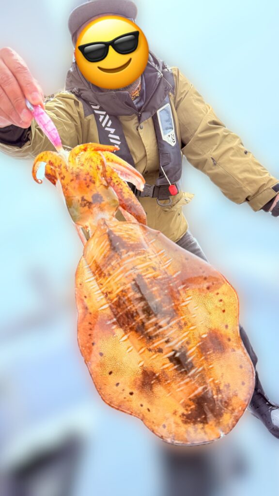 そしてとうとう出ました当船初の2kgオーバー🦑⬆️水抜き2.2kgの大型を釣り上げて頂いたのは常連の末次様❗️思わずハイタッチからのガッチリ握手🤝おめでとうございます㊗️‼️