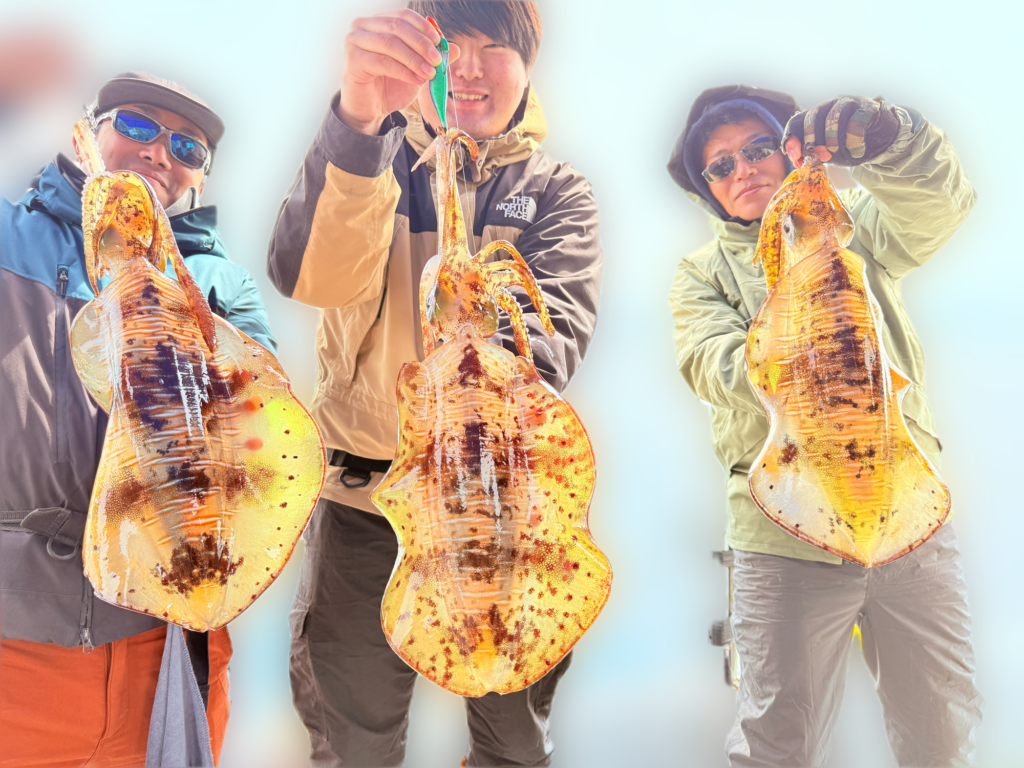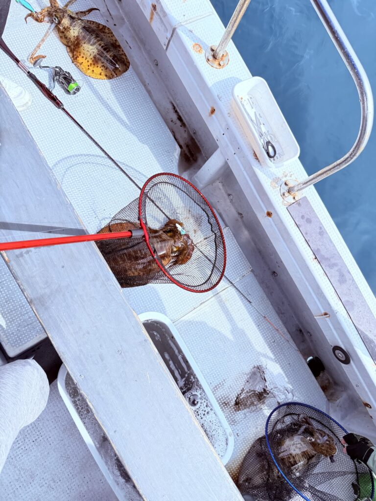 追尾、バラし、かけ損ない多数…砂地なのでコウイカも良く触って来て6杯確保🦑タモ3本フル稼働で船長汗だく😅ラッシュ時、ブツ持ち写真撮れなかったお客様すいません😭💦