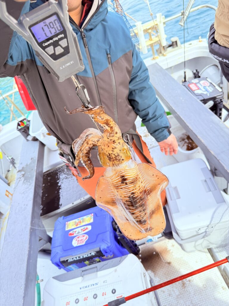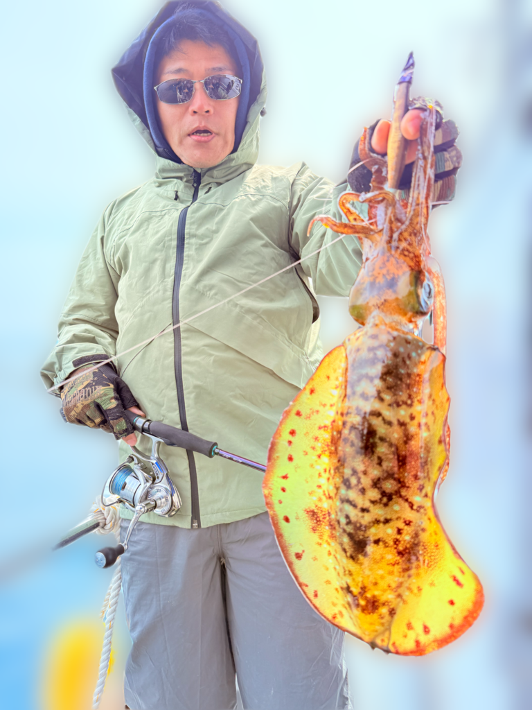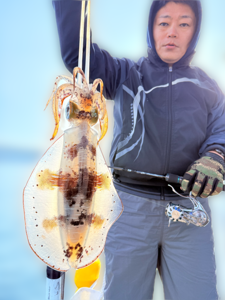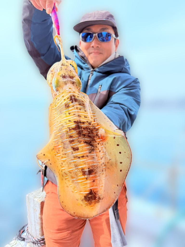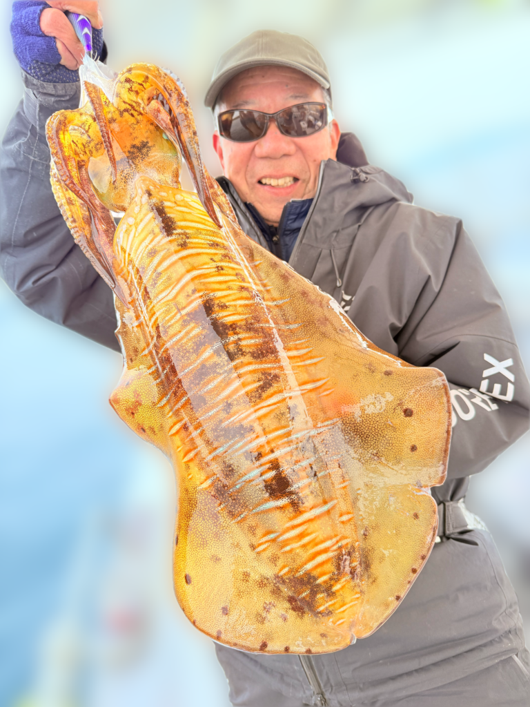 そして本日の竿頭は創業当初からの常連、松井様❗️アオリイカ4杯(うち3杯キロ🆙最大1.8kg)おまけのコウイカ1杯🦑「この時期にコレはヤバ過ぎ(笑)」とコメント🙇♂️また良い思い出が出来ましたね😁‼️