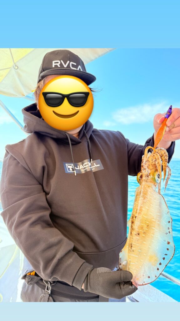 上がって来たのはナイスサイズの1.5kg👍このサイズを待ってたんだよ〜😆‼️お客様が後ろにも着いてきてた‼️との事で写真撮影はせず即エギを投入🎣暫く流した所で同じお客様が連チャンヒット🔥