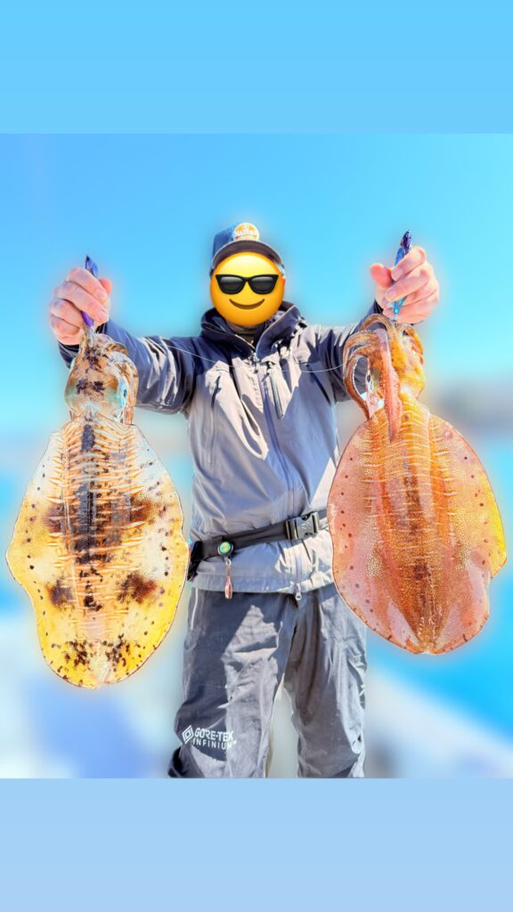 今度も先程同様の1.5kgでした🦑春イカやっぱり来てますね🎵記念にダブルブツ持ち📸素晴らし過ぎます㊗️‼️いやー良かった❗️このサイズが見れたなら安心して帰れる😮💨時間通り納竿🎣