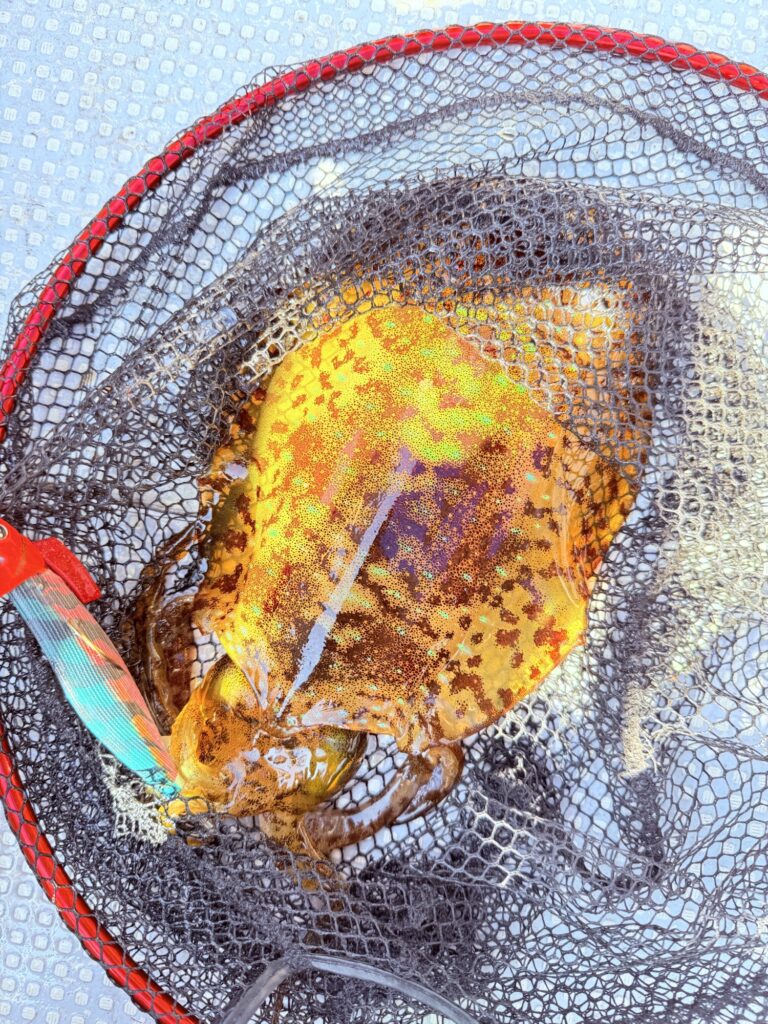 時合と思った時間には大型は出ず、何ヶ所かベイトの固まっているポイントを移動して撃っていくと遂にドラグを鳴らしまくるサイズがヒット🦑‼️